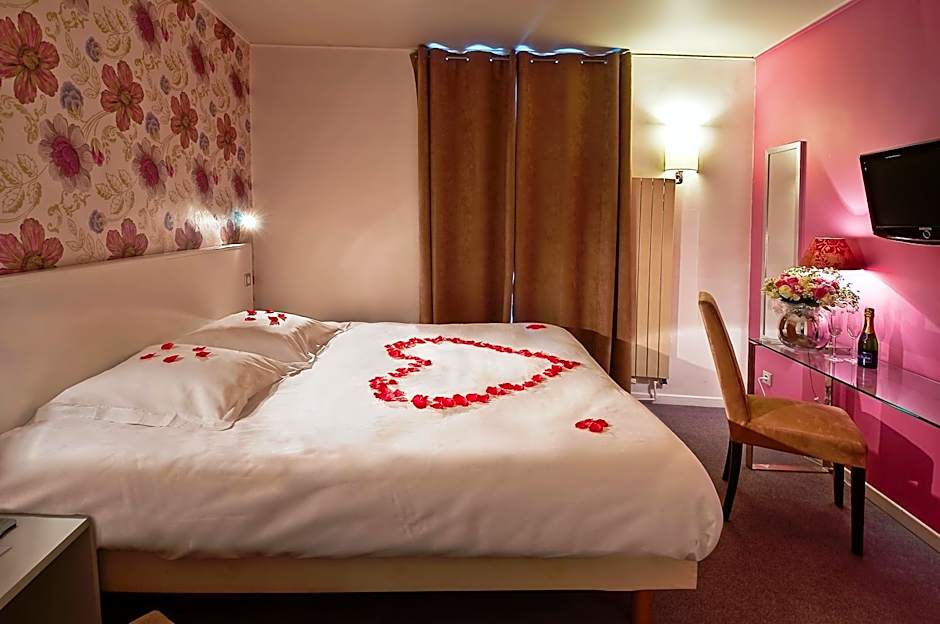Room « SPACIOUS » with large double room , bed 160 to 180 x 79 in (queen or king size bed, available with twin beds also) ; design and contemporary, large flat TV screen. Room has a south sunny exposure on a quiet street. Bathroom includes glass basin, halogen lighting, with swiss made hair dryer and international razor outlet.