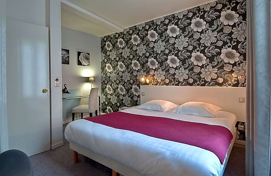Ideal single room, bed 120 to 140 x 200, design and contemporary style, large flat TV screen. Room has view on courtyard and garden (quiet). Bathroom includes glass basin, halogen lighting, with swiss made hair dryer and international razor outlet